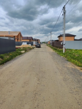 Участок огорожен забором с трех сторон По границе магистральный газ с возможностью подключения, Электричество 15 кВт, Дорога - асфальтовая крошка . Участок ровный.